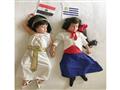 صممت أمريكية نماذج مصغرة من الأزياء الوطنية الخاصة بالدول المشاركة في كأس العالم 2018، لطفلتيها وصورتهما وبجوارهما أعلام الدول.