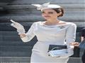 اختارت "أنجلينا " أن ترتدي فستان رمادي فاتح اللون ونسقته مع حقيبة فضية وحذاء من نفس اللون، وجاءت الإطلالة من توقيع دار Ralph&Russo ، وتميزت بقبعة وقفازات من خامة الساتان، وزينت الفستان ببروش على منطقة صدرها وأقراط ماسية في الأذنين.