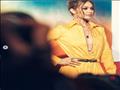 وارتدت حزامًا ذهبي اللون أبرز قوامها الممشوق، واعتمدت على تصفيفة الشعر المرفوع مع الإكسسوارات البسيطة.