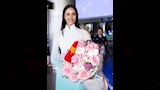 وزين الفستان بخيوط ذهبية رفيعة ذادت من رقي وأناقة التصميم، منحها ذلك طلة أنثوية جذابة، كما تميز فستانها من الأعلى بالخامة اللامعة المطرزة بالترتر الفضي، بالإضافة إلى فتحة الرقبة التي تتخذ شكل الـV وقصة الأكتاف الحادة والكاب الطويل. وطبقت لمسات بسيطة من المكياج، مع تصفيفة الشعر المرفوعة.