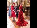 وأطلت كيت ميدلتون زوجة الأمير وليم، بمعطف طويل باللون الأحمر، اتخذت قصته شكل الفستان، وحمل توقيع مصممة الأزياء الشهيرة Catherine Walken، ونسّقت معه حذاء وحقيبة من درجات "النود" حملوا توقيع دار الأزياء Emmy London .