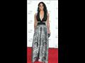والفستان كان باللون الأسود وبدون أكمام، وتميز تصميمه بفتحات من جانبي الخصر، وتنورة منفوشة تحتوي على طيات مليئة بالطبعات والنقوش، وفتحة صدر على حرف v.