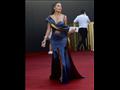 ارتدت رانيا فستانًا طويلاً باللون الأزرق، بصيحة هاف ستومك، بقصة جريئة عند منطقة الصدر، وفتحة ساق طويلة.