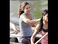 ومرة أخرى من نفس العام ظهرت وهي ترتدي تيشرت أنيق مقلم باللونين الأبيض والأسود، مع بنطلون رياضي أسود أثناء ممارستها لرياضة التجديف.