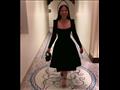 حيث تألقت بفستان قصير منفوش، بأكمام طويلة وفتحة صدر مربعة، باللون الأسود.