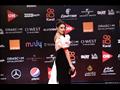 وظهرت الفنانة اللبنانية بفستان طويل باللون الأحمر بقصة الأوف شولدر، ونسقت قفازات جلدية من نفس اللون، ولفتت الأنظار بارتدائها شابو أحمر ضخم على رأسها، معتمدة تسريحة الشعر المنسدل.