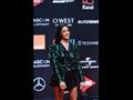 نسقت مع الإطلالة كلاتش باللون الأسود، كما اعتمدت اللون الأخضر اللامع في المكياج فوق العين.