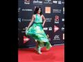 وارتدت الفنانة ناهد السباعي فستانا قصيرا لامعا فوق الركبة باللون الأزرق مزود بأكمام، واعتمدت مكياجا ناعما، كما نسقت مع إطلالتها كلاتش باللون الأحمر.