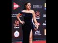 وتألقت الفنانة ياسمين صبري، بفستان أصفر، تميز بكونه طويل ومفتوح، بحمالات عريضة "وان شولدر"، جاء مرصعا بالفصوص اللامعة.