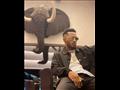 وارتدى قميصا باللون الأسود، وبنطلون بخطوط من الجانب بنفس اللون، ومعه تيشرت بيزك باللون الأبيض، وأكمل إطلالته بالعديد من الإكسسوارات الملفتة، مكونة من خاتم على شكل توت عنخ أمون، والعديد من السلاسل.