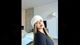 وارتدت بلوزة كت باللون الفضي، ونسقت أسفله بنطلون باللون البيج.