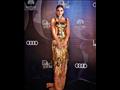 وارتدت درة فستان كت باللون الذهبي اللامع، ميتاليك، تميز قصته بحرف الـv من عند الصدر، وبشراشيب من الأسفل، ونسقت معه كلاتش بنفس اللون.