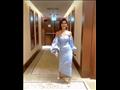 وأطلت بفستان باللون البيبي بلو، بقصة الميرميد، وبصيحة الكب من عند الصدر، مزودا بأكمام منفصلة منفوشة، وبه حزام من عند الخصر، ونسقت معه حذاء باللون الفضي للامع.