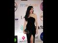 وارتدت فستان باللون الأسود بقصة الكب ومزود بفتحة ساق جريئة.