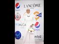 وزينت الإطلالة بعقد فخم من الألماس، كما نسقت معها حقيبة يد بألوان النيون المميزة، واختارت مكياجًا قويًا يعتمد على إبراز رسمة العين بالكحل الأسود.