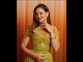 واعتمدت مكياجا قويا، واختارت أن تترك شعرها منسدلا على الجانبين.