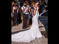 وارتدت مجوهرات ماسية مكونة من أقراط طويلة، وخاتم.