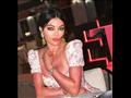 تألقت بفستان باللون الأبيض مزينا بالورود، وتميز بأنه مكشوف من عند منطقة الصدر وبه فتحة ساق جريئة.