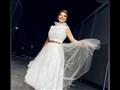 والفستان جاء باللون الأبيض مكون من قطعتين توب كات، وجيبة منفوشة، مصنوع بقماش مزيج من الدانتيل والشيفون.
