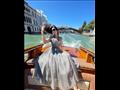 ياسمين ارتدت فستانا طويلا باللون الرصاصي، مزود بحزام عند منطقة الخصر، ونسقت مع إطلالتها حذاء باللون الأبيض.