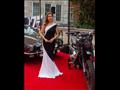 وظهرت ريا مرتدية فستانا طويلا باللوني الأبيض والأسود، وتميز بأنه بقصة الكم الواحد.