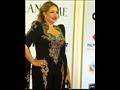 وتألقت بفستان طويل باللون الفضي، مزود بأكمام طويلة وواسعة، واعتمدت مكياجا قويا، وارتدت مجوهرات ماسية مكونة من كوليه و أسورة وخاتم.