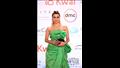 وارتدت فستانا طويلا باللون الأخضر بقصة الكب ومزود بفتحة ساق جريئة.