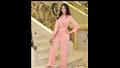 وارتدت جمبسوت باللون البينك الفاتح، ونسقت معه شنطة جلد باللون البيج، واكتفت بوضع اكسسورات بسيطة.