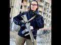 وظهرت مرتدية زي الجنود وحاملة للسلاح معلنة تضامنها مع جيش بلادها.