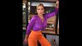 وتألقت بتوب باللون البنفسجي ونسقت معه بنطلون باللون البرتقالي.