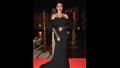 حيث ارتدت فستان سك طويل باللون الأسود بصيحة " الأوف شولدر"، مزود بأكمام منفوشة وبها جوانتي مفتوح من الأصابع.