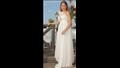 حيث ارتدت فستان طويل باللون الأبيض بقصة الوان شولدر، مزود بـ اللؤلؤي اللامع عند منطقة الصدر.
