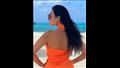 وارتدت فستانًا صيفيًا، باللون البرتقالي، يتناسب مع قوامها، ويبرز أنوثتها.