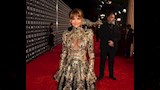 تألقت النجمة الأميركية هالي بيري بفستان لامع بقصة طويلة وبتنورة كلوش بمزيج من اللون الأسود والفضي، ويتميز الفستان بإنه مزينا بالتطريزات الذهبية وبفتحات شفافة.