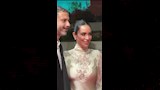 وارتدى زوجها محمد فراج بدلة باللون الأسود ونسق أسفلها قميص باللون الأبيض.
