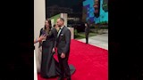 بينما ارتدى زوجها الفنان أحمد خالد صالح بدلة باللون الأسود ونسق أسفلها قميص أبيض ورابطة عنق سوداء.