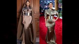 ظهرت بنفس الفستان واللون عارضة الأزياء البرازيلية دين ماريان، لكنها حافظت على التصميم الأصلي للفستان.