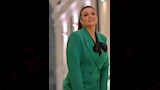 ظهرت بشرى مرتدية بدلة باللون الأخضر، ونسقت أسفلها قميص أسود.