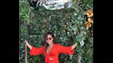 وأطلت شيري بفستان طويل مكون من كروب توب وجيب باللون الأحمر.