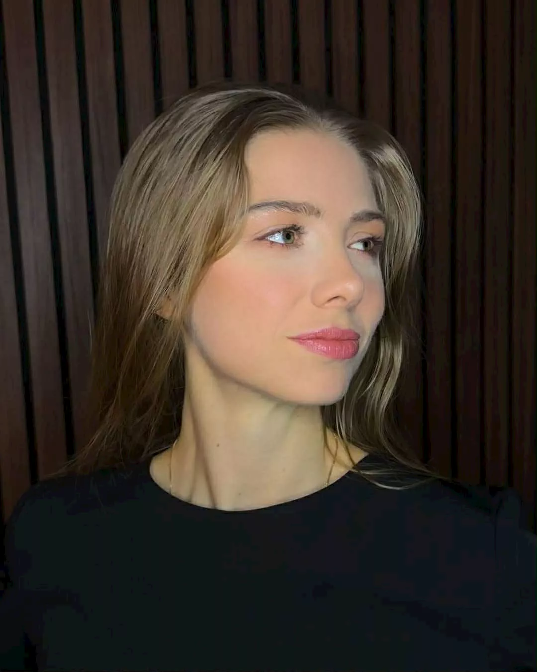 ارتدت "شارلوت" فستانا طويلا باللون البيج بقصة انسيابية وتطريزات لامعة، واعتمدت مكياجا ناعما بدرجات النيود، وتركت خصلات شعرها منسدلة على جانبي وجهها.