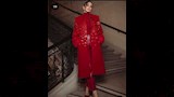 نسقت تحت المعطف سروالًا ضيقًا وكنزة برقبة عالية، جميعها بنفس الدرجة من اللون الأحمر، ما يخلق إطلالة أحادية اللون.
