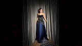 أطلت يارا مرتدية فستان طويل باللون الأزرق، تميز بأنه بقصة الكب، منفوش من أسفل ومزين بتطريزات لامعة.