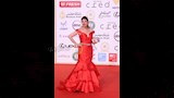 وارتدت هالة سرحان فستانًا طويلًا باللون الأحمر القاني يتميز بتصميمه الكلاسيكي الذي يجمع بين الأنوثة والفخامة.
