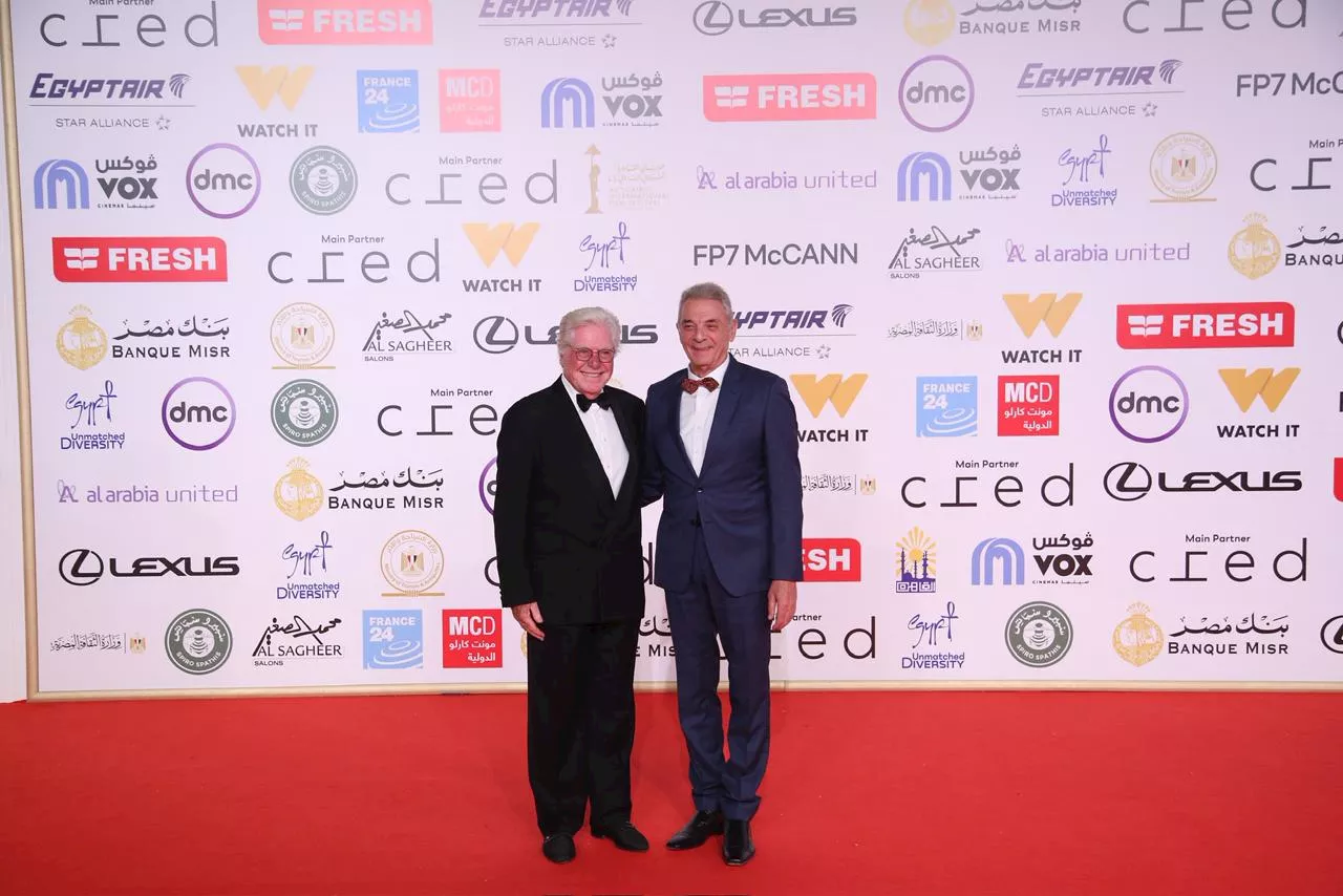 ظهر الفنان حسين فهمي، بإطلالة جذابة خلال حضوره فعاليات اليوم الرابع من مهرجان القاهرة السينمائي في دروته الـ46.