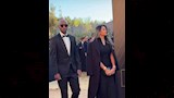 أما زوجته سارة، تألقت بفستان طويل أسود بقصة انسيابية، ونسقت معه بالطو طويل بنفس اللون، واعتمدت مكياجا ناعما بدرجات النيود، مع شعر منسدل على الجانبين بشكل بسيط.