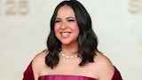 وزينت إطلالتها بمجوهرات ماسية مكونة من خاتم وأسورة وساعة، ونسقت مع إطلالتها حذاء باللون الأسود.