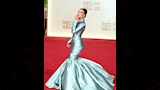 وتألقت صبا مبارك بفستان باللون الأزرق المائل للأخضر، والجزء العلوي مصمم على شكل جاكيت بدلة رسمي، والجزء السفلي تنتهي بذيل كبير وواسع جداً على شكل حورية البحر.
