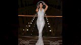 وارتدت ريم فستان طويل باللون الفضي اللامع بصيحة الظهر المكشوف ونسقت معه جاكيت قصير بنفس اللون، من تصميم "Dalmar".