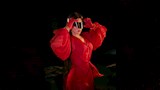 ارتدت فستانا قصيرا باللون الأحمر اللامع مصنوعا من قماش الترتر، وتصميم الفستان بحمالات رفيعة، ونسقت الإطلالة مع صندل بكعب عال باللون الذهبي.