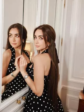 واعتمدت مكياجا ناعما، حيث وضعت أحمر شفاه باللون الوردي.